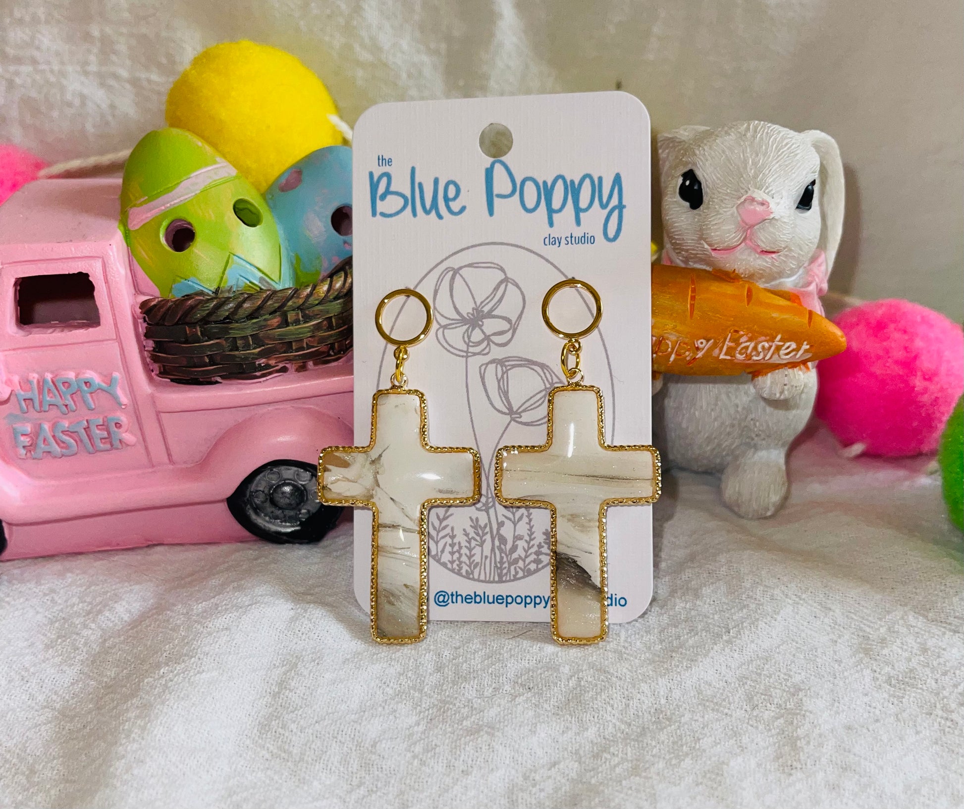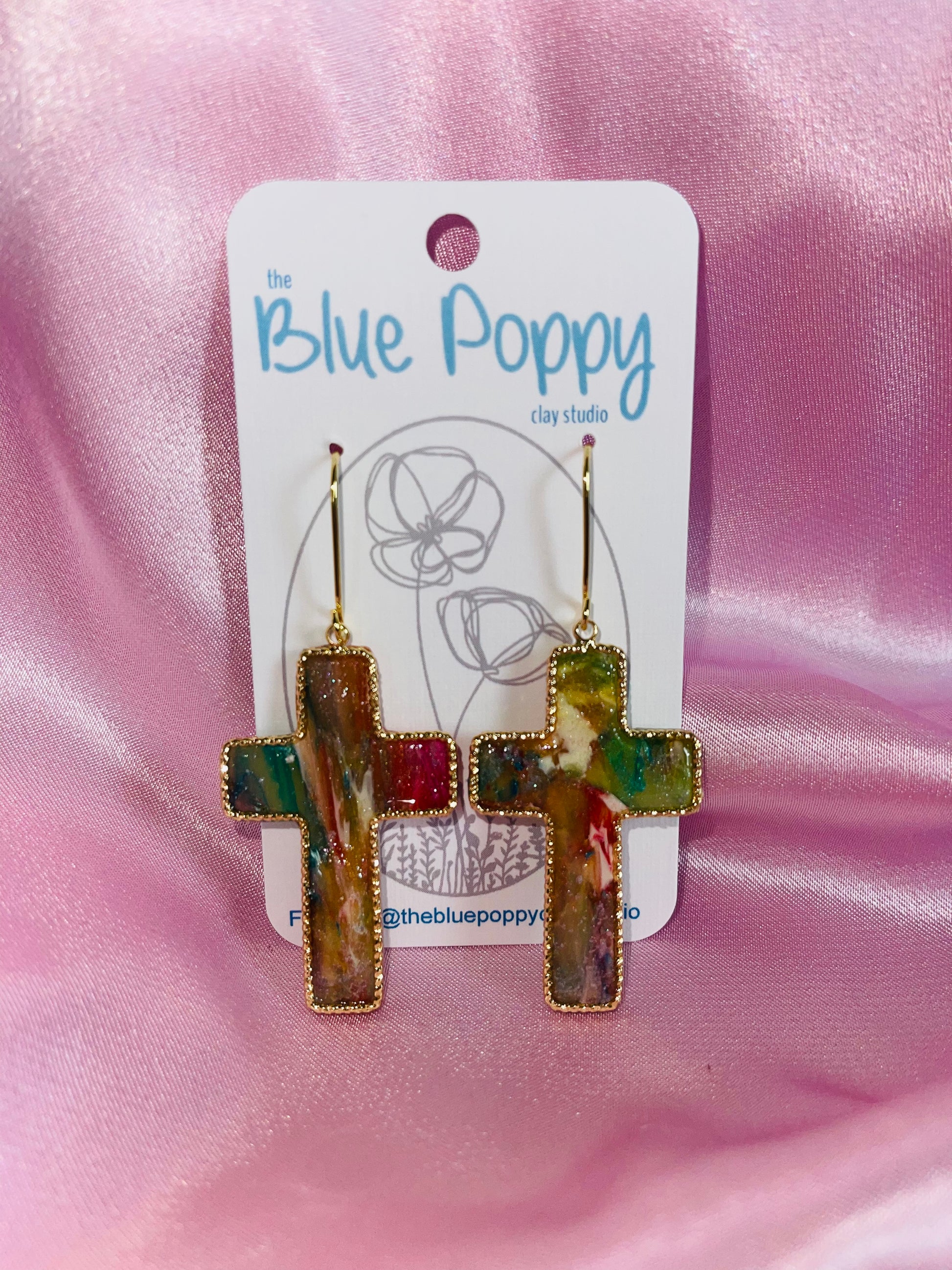 Beautiful marbled cross with gold accents. These are made with a fun marbling technique that make each truly unique and one of a kind. Each pair will vary slightly because of this technique.