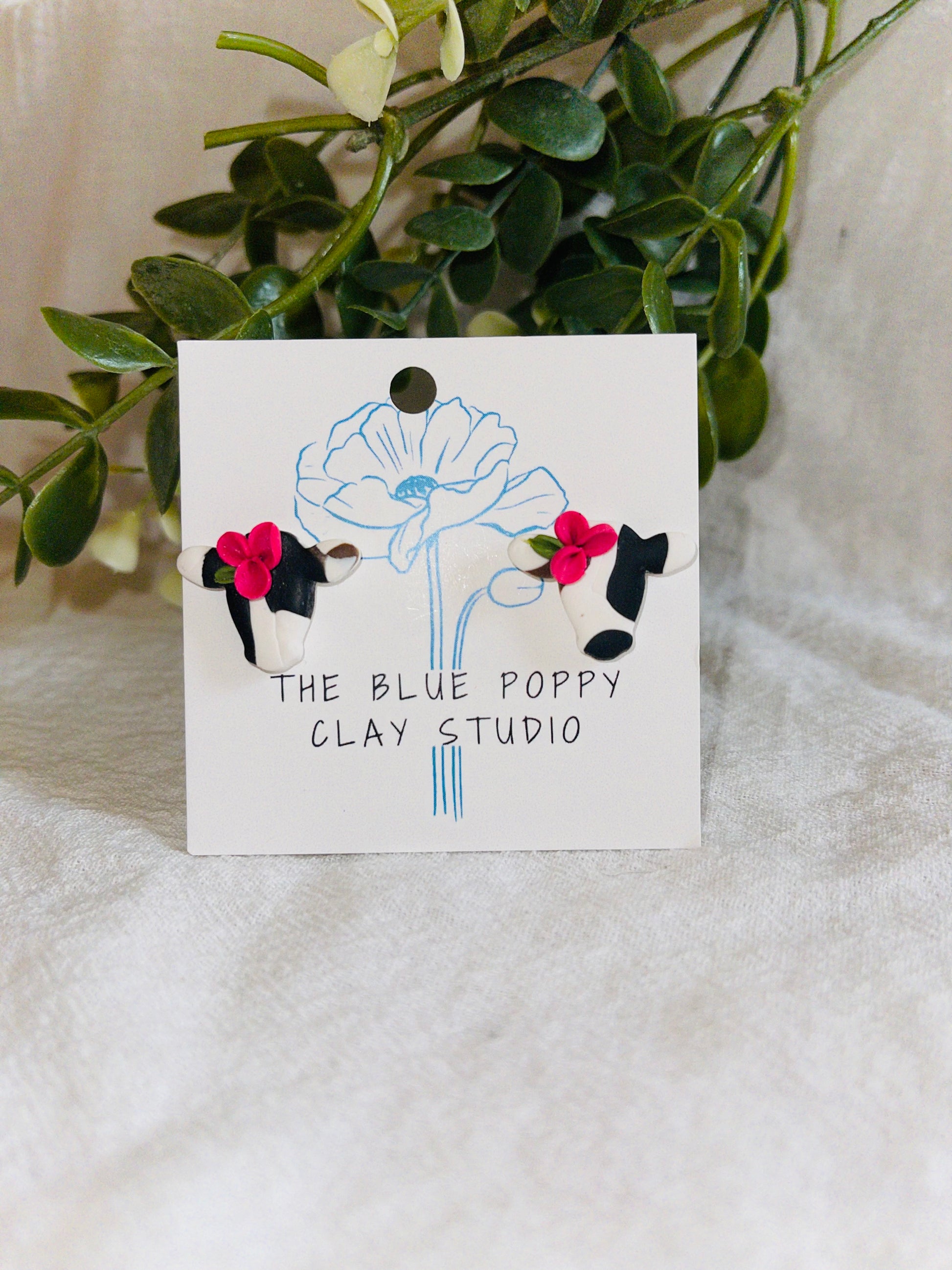 Moo studs with pink flowers are perfect for every cow lover big or small.