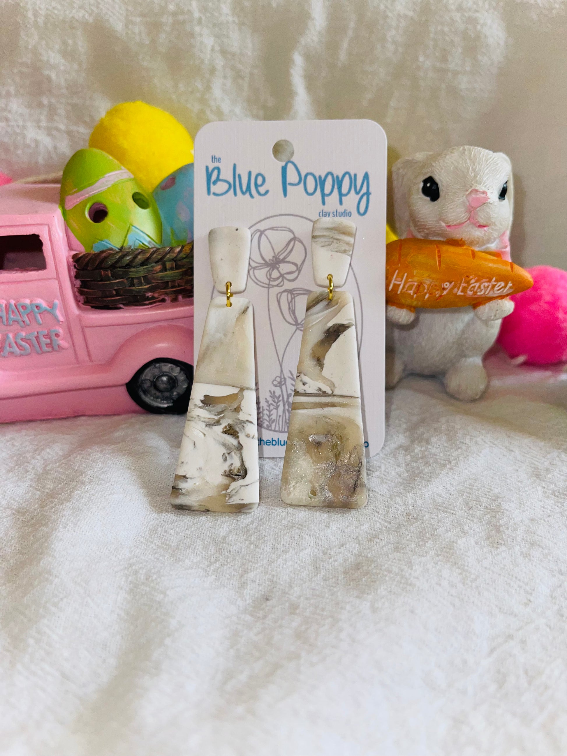 These are Allie's favorite earring style. These are made with a gorgeous marble slab that has all the perfect neutrals to go with any outfit!!
