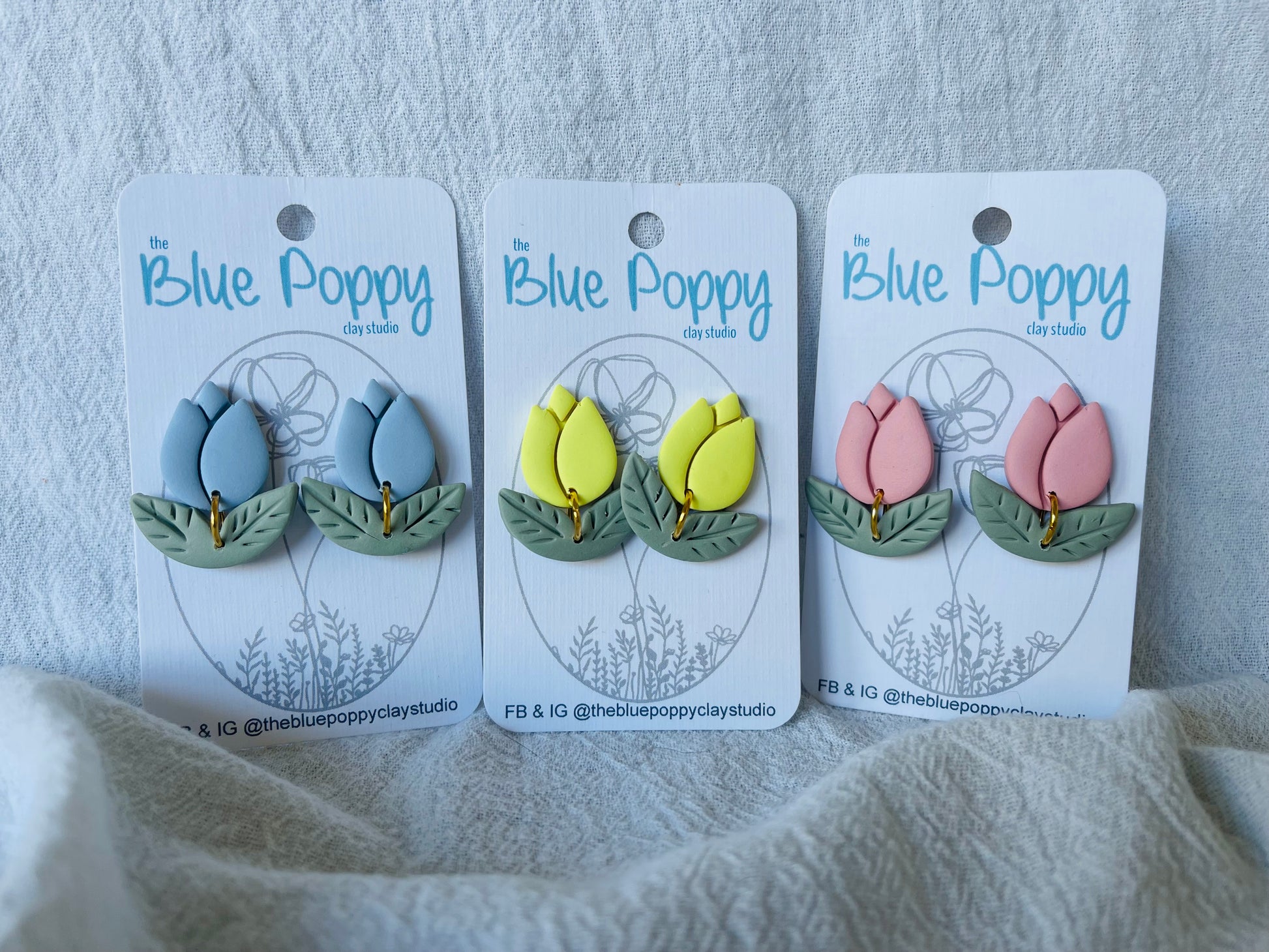 Tulip studs that come in 3 different colors. These are light weight studs perfect for every occasion.